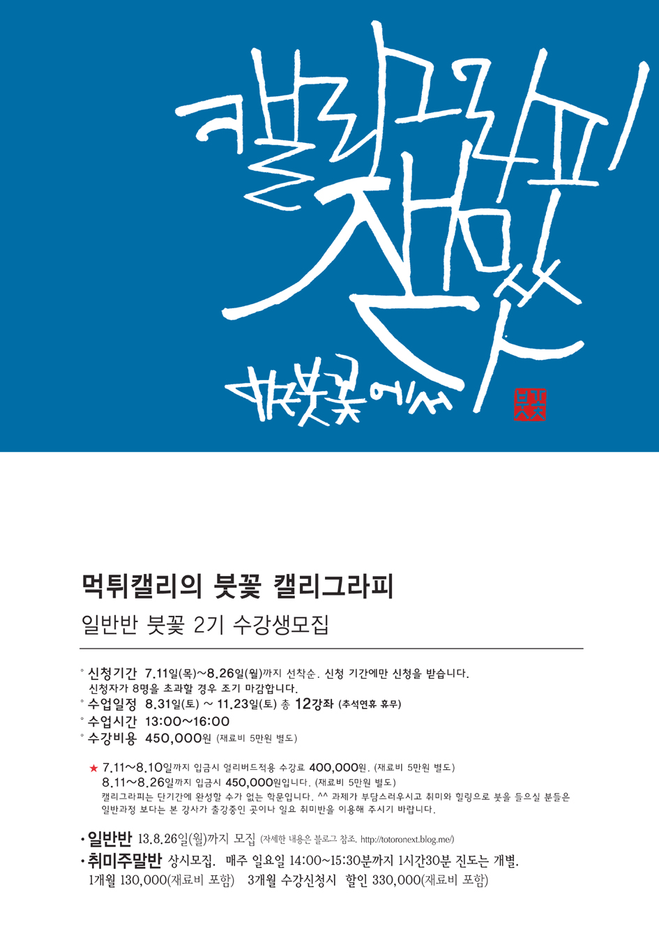 먹튀캘리의 붓꽃 일반반 수강생 모집