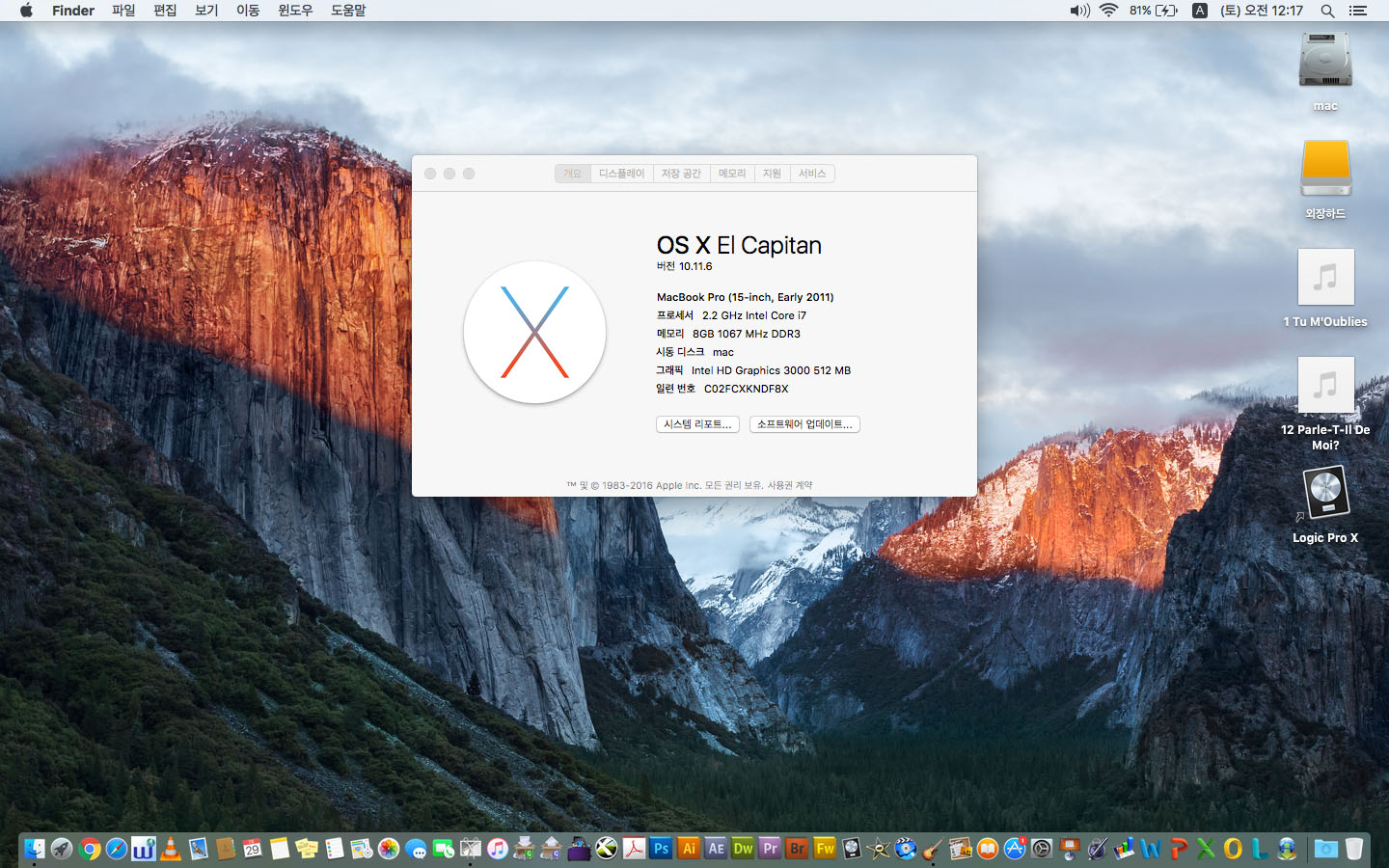 맥북프로 15인치 2011년 a1286모델입니다